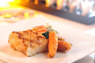 Chargrilled fresh tuna steak (served medium rare) on classic Niçoise salad with French beans, cherry tomatoes, black olives, peppers, new potatoes, egg, baby gem lettuce and red onion